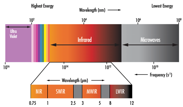 圖 1: 說(shuō)明SWIR波長(zhǎng)范圍的電磁光譜