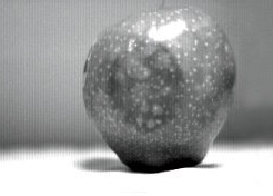 圖 2b: 紅蘋(píng)果的近紅外成像。通過(guò)近紅外成像,瘀傷顯而易見(jiàn)。很容易檢查表皮上的任何缺陷。