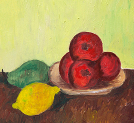 圖 5a: 這幅色彩豐富的 水果 圖是費(fèi)城畫(huà)家Nicole Koenitzer的作品,這幅畫(huà)詳細(xì)說(shuō)明了畫(huà)家的作畫(huà)計(jì)劃過(guò)程。通過(guò)利用近紅外波段來(lái)檢測(cè)繪圖,用戶可以了解該名畫(huà)家的作畫(huà)思維,從*初的起稿到上顏料,再到細(xì)化作品等階段。
