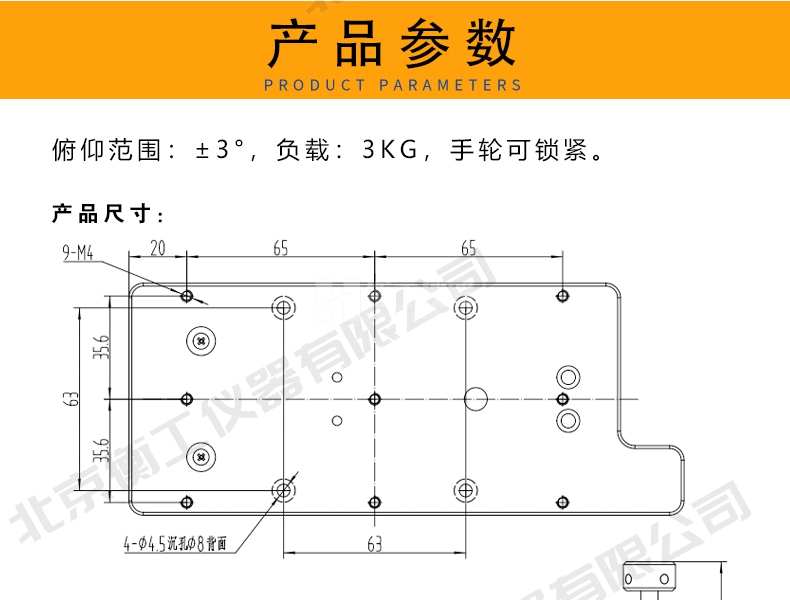 臺面尺寸:170X80 俯仰范圍:±3° 負載3公斤手輪可鎖緊