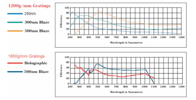 例如,刻線數(shù)為1200g/mm,閃耀波長300nm的光柵型號(hào)就是HOG1200-300;