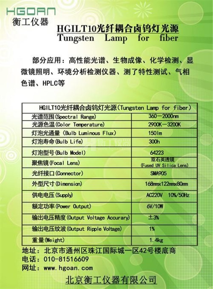 衡工光纖鹵鎢燈采用獨(dú)特的光學(xué)設(shè)計(jì),耦合準(zhǔn)直輸出,寬光譜能量大,很適合光譜實(shí)驗(yàn)。