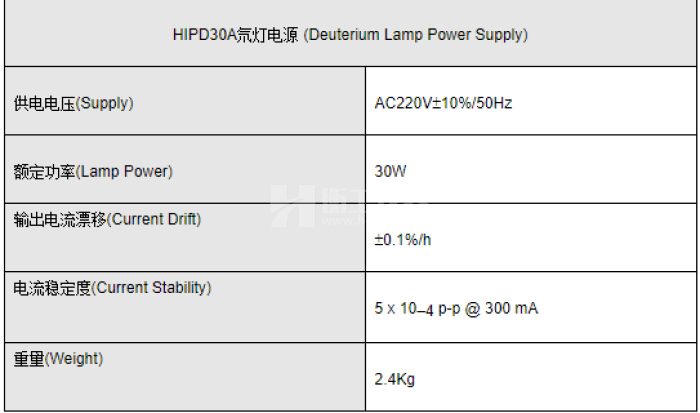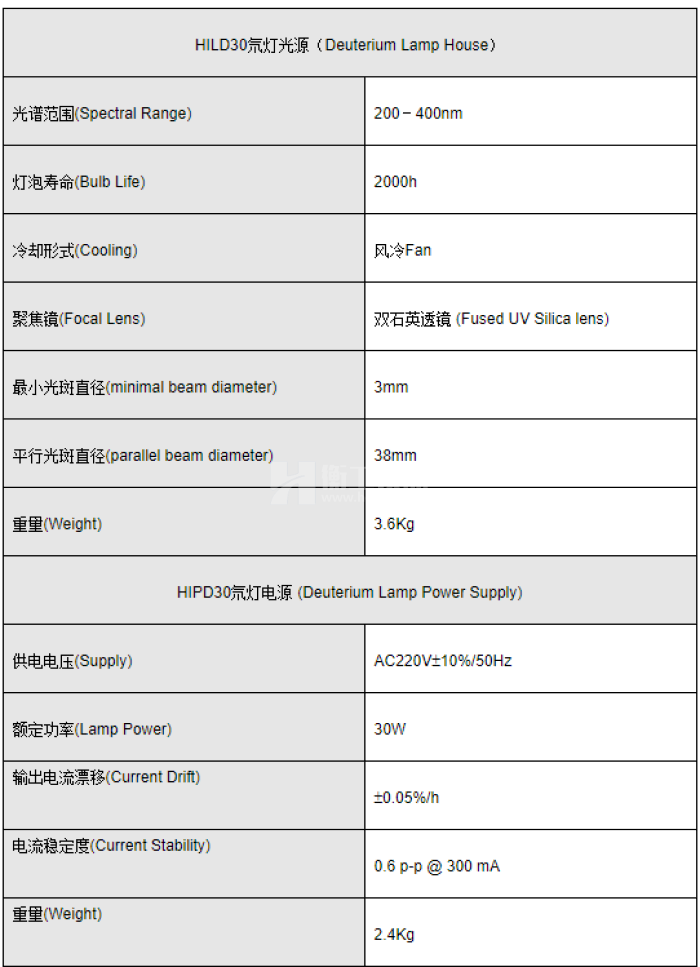 氘燈光源主要用于紫外,可到真空紫外界限195nm,并且波長(zhǎng)越短,亮度越高,在360nm以下比一般鹵鎢燈的輻亮度高。氘燈光源室內(nèi)置長(zhǎng)壽命氘燈燈泡,用戶可自行更換。與我公司穩(wěn)流電源配套使用時(shí)穩(wěn)定性更佳,可用作獨(dú)立的紫外光源,熒光光源的激發(fā)光源,或與我公司生產(chǎn)的單色儀、光譜儀、樣品室、濾光片輪等配套使用組成各種應(yīng)用系統(tǒng)。 產(chǎn) 品 規(guī) 格:30W光譜范圍:200nm-400nm平行光斑直徑:Φ38mm最小光斑直徑:Φ3mm電流穩(wěn)定度:≤5×10-4p-p@300mA |
