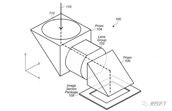 在美國(guó)專利和商標(biāo)局周二授予一項(xiàng)名為"帶有移動(dòng)光學(xué)元件致動(dòng)器的折疊式相機(jī)"專利中,蘋果公司提出了一些在設(shè)備中包含折疊式光學(xué)元件和鏡頭移動(dòng)的方法。在各種實(shí)施方案中,蘋果建議該系統(tǒng)可以由兩個(gè)棱鏡組成,在這對(duì)棱鏡之間有一個(gè)由多個(gè)元素組成的鏡頭組。棱鏡將光線沿軸線引向成像傳感器,而鏡頭組則處理各種光學(xué)功能。
