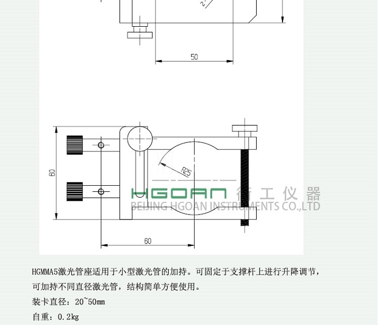 HGMMA5激光座適用于小型激光管的加持,可固定于支撐桿上進(jìn)行升降調(diào)節(jié),可加持不同直徑激光管,結(jié)構(gòu)簡(jiǎn)單方便實(shí)用。