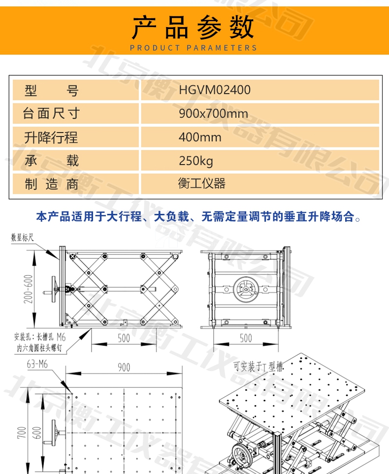 衡工HGVA2精密大行程重載升降臺精密大行程升降臺豎直位移臺高精度電動升降工作臺重載大臺面平臺