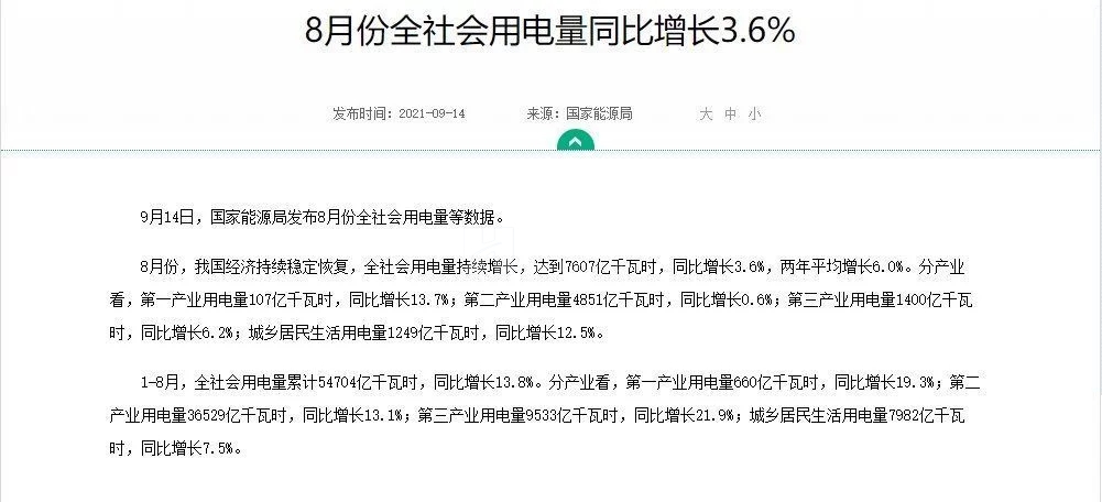 9月14日,國家能源局發(fā)布8月份全社會用電量等數(shù)據(jù)。