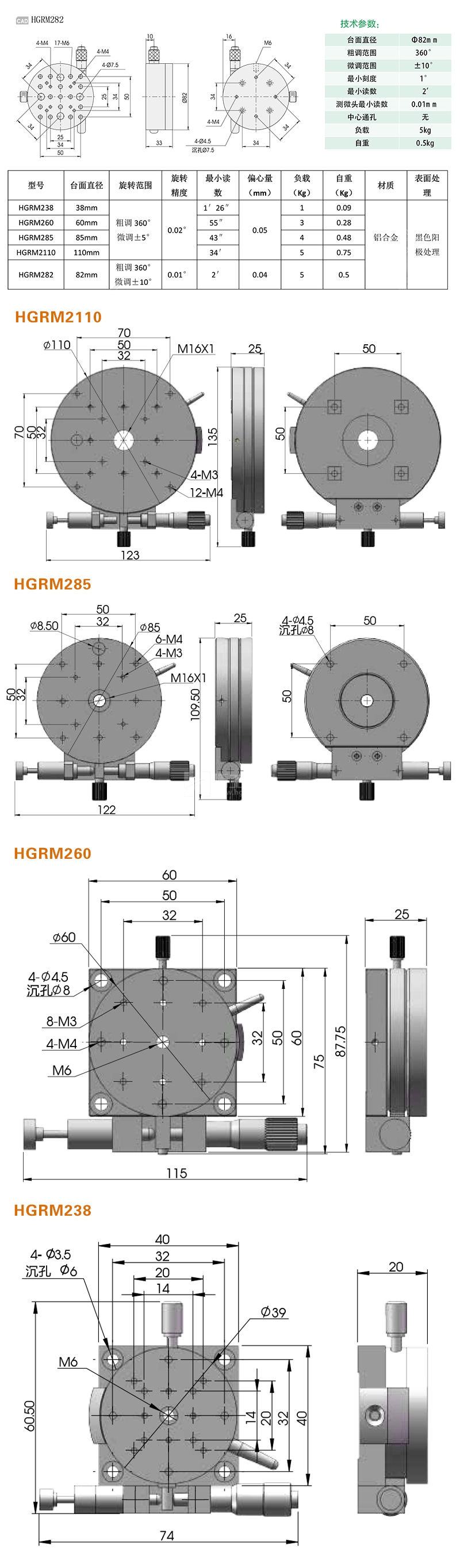HGRA145 HGC301光學微型精密電動手動旋轉(zhuǎn)臺多維組合升降蝸輪電控位移角度滑臺