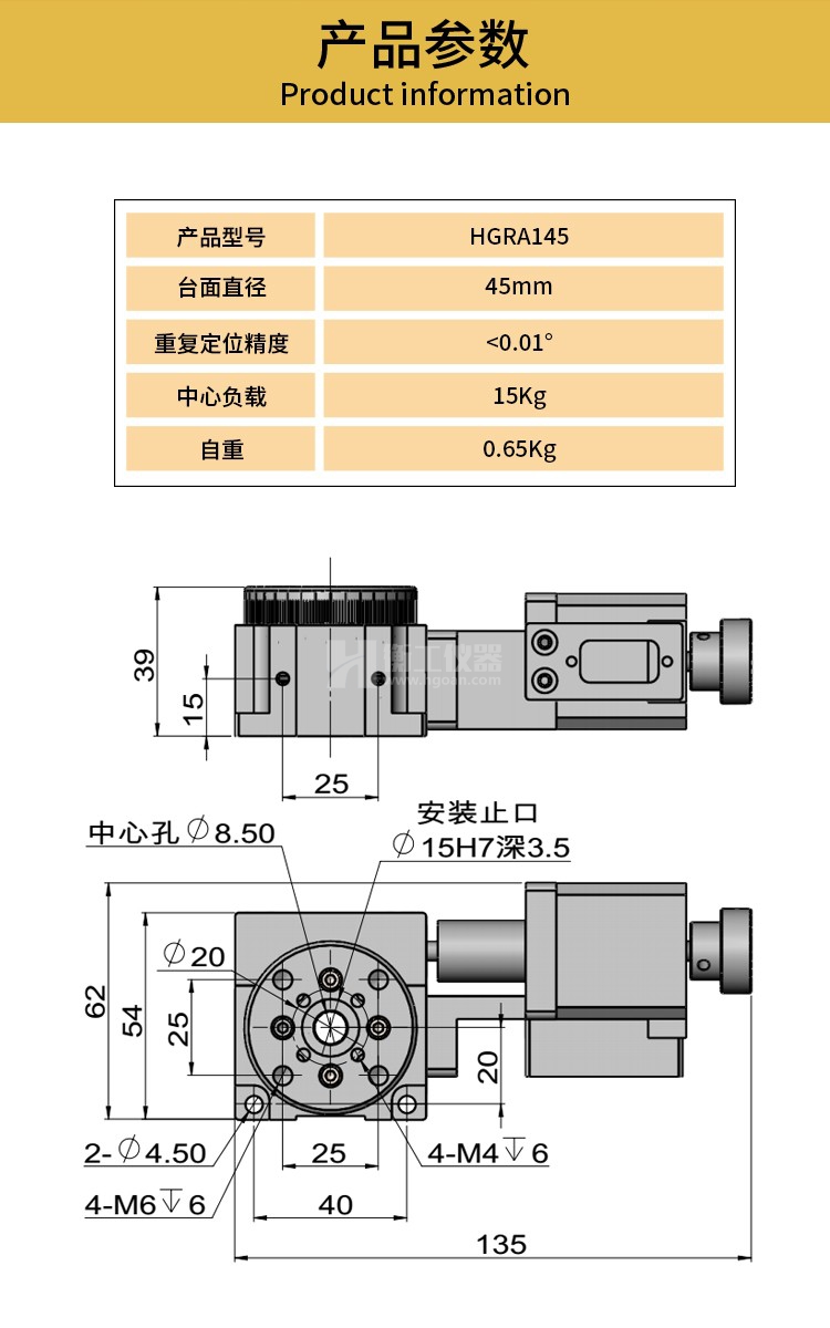 HGRA145 HGC301光學(xué)微型精密電動(dòng)手動(dòng)旋轉(zhuǎn)臺(tái)多維組合升降蝸輪電控位移角度滑臺(tái)