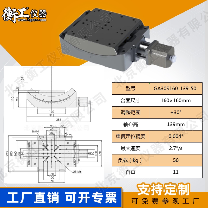 衡工光學實驗電動角度轉臺高精度傾斜俯仰角位臺廠家直銷